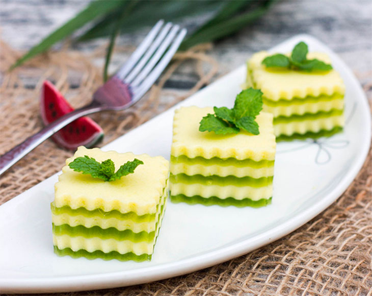 Sau khi đổ hết thạch, các bạn cho vào ngăn mát tủ lạnh đến khi thạch đông hoàn toàn và chờ lạnh và cắt thành từng miếng vừa ăn là có thể thưởng thức rồi.